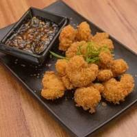 Atum fresco empanado, temperado com especiarias da casa servido com geleia de pimenta.