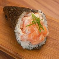 DELICIOSA TIRA DE SALMÃO MAÇARICADA, RECHEADA COM CAMARÃO, ARROZ E CREAM CHEESE.