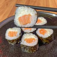 4 un. Porção de Salmão fresco com arroz Gohan.